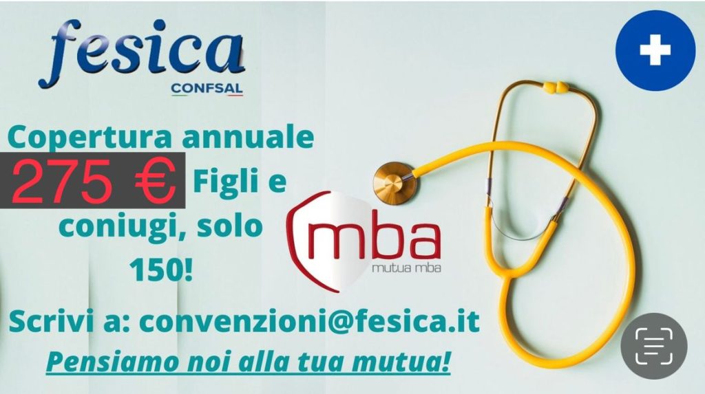 Per gli iscritti Fesica Confsal è stata attivata una nuova convenzione con MUTUA MBA per i rimborsi di diverse prestazioni sanitarie. La convenzione dà diritto ad un prezzo straordinario di copertura annuale pari a 275 euro.