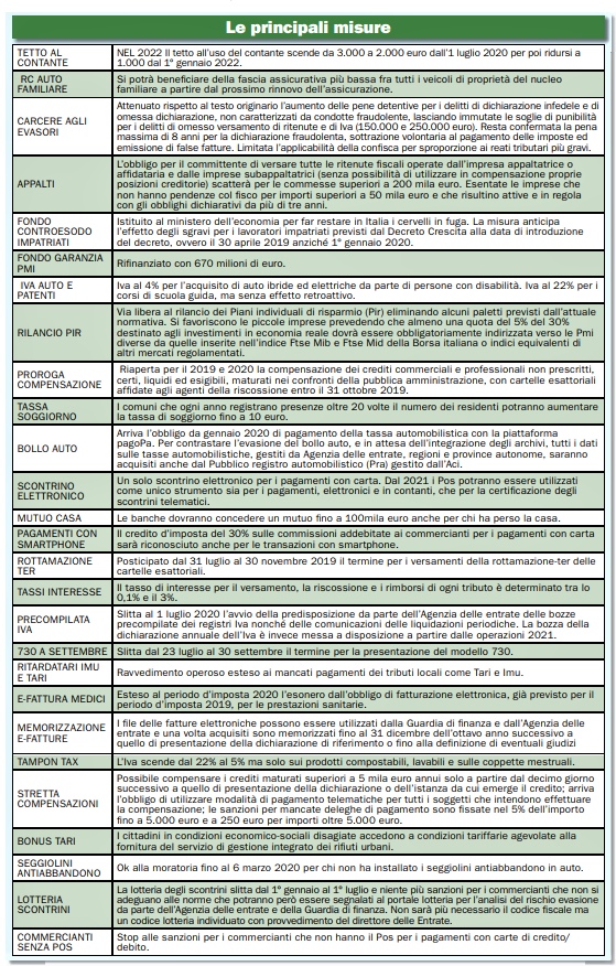 Sono alcune delle misure principali contenute nel decreto fiscale (124/2019), convertito ieri in legge dal Senato.