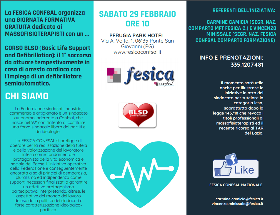 Nel corso della giornata, chi lo vorrà, potrà effettuare in modo del tutto gratuito ed insieme agli istruttori abilitati della Fesica Confsal, un corso BLSD con post certificazione.
