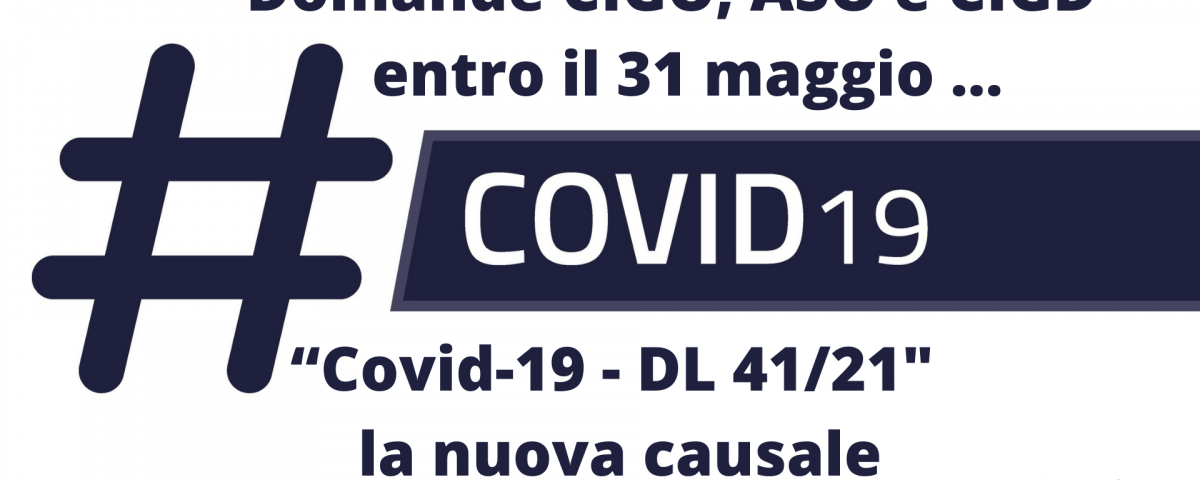 Le domande di accesso ai trattamenti di CIGO, ASO e CIGD potranno essere trasmesse, a pena di decadenza, entro il 31 maggio 2021, utilizzando la nuova causale “Covid-19 – DL 41/21”, per la quale non è previsto alcun contributo addizionale a loro carico.