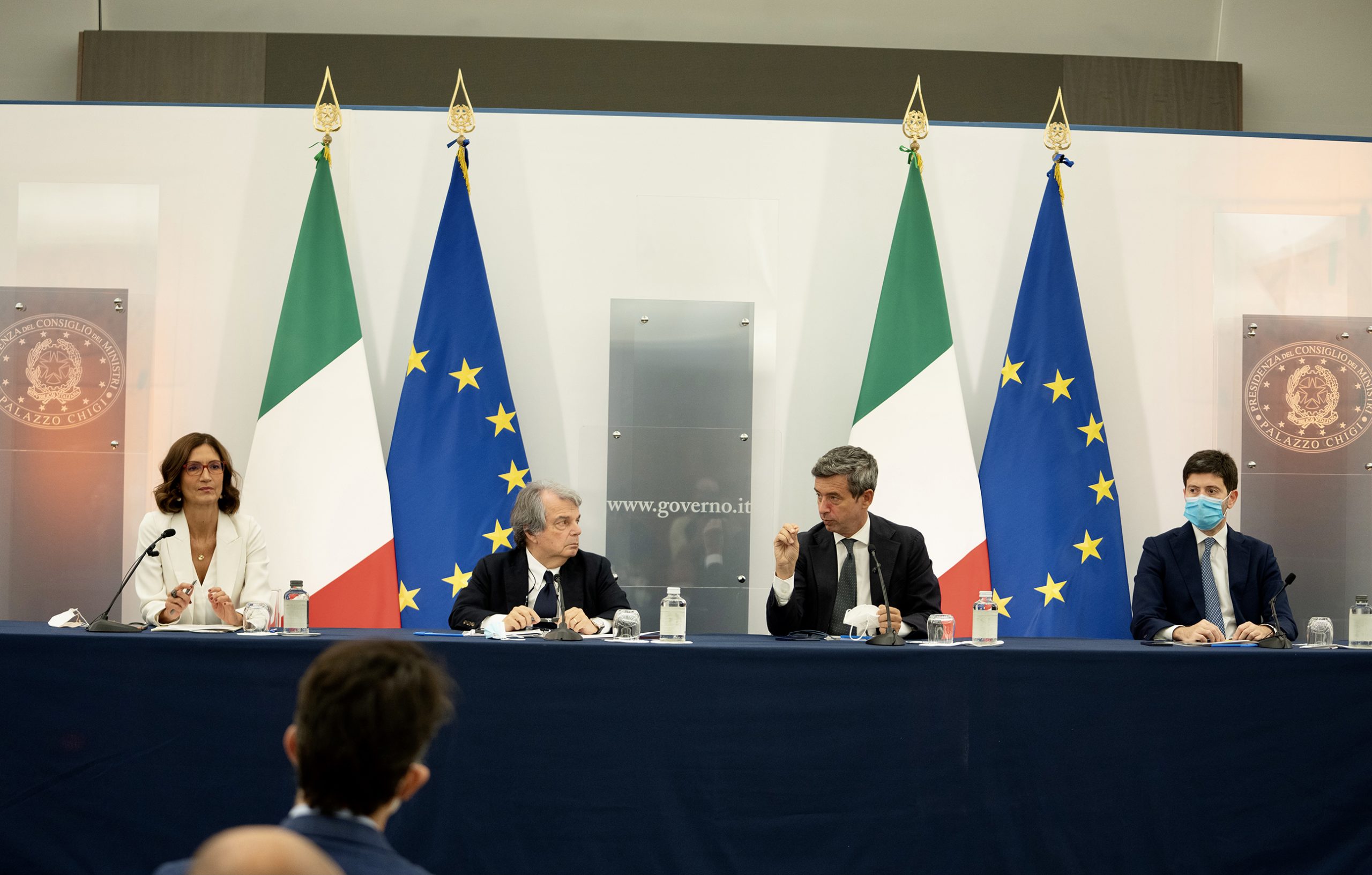 l Ministri M. Gelmini, Renato Brunetta, Andrea Orlando e Roberto Speranza, hanno tenuto una conferenza stampa sull’obbligo del green pass sui luoghi di lavoro