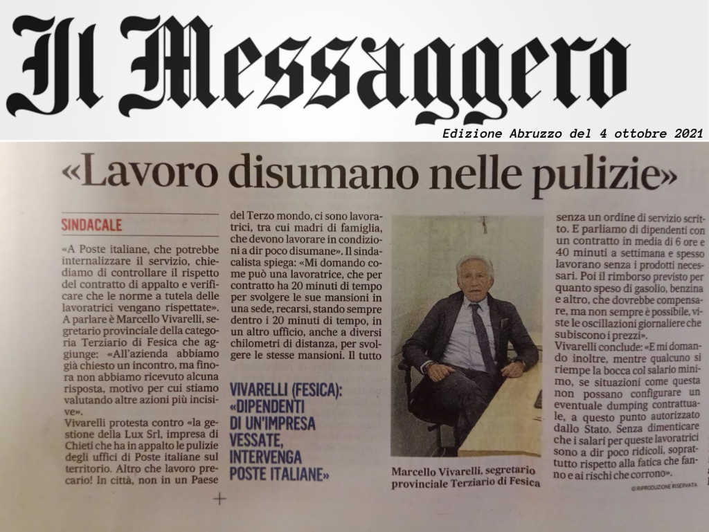 “Lavoro disumano nelle pulizie”. La denuncia di Vivarelli contro la Lux srl