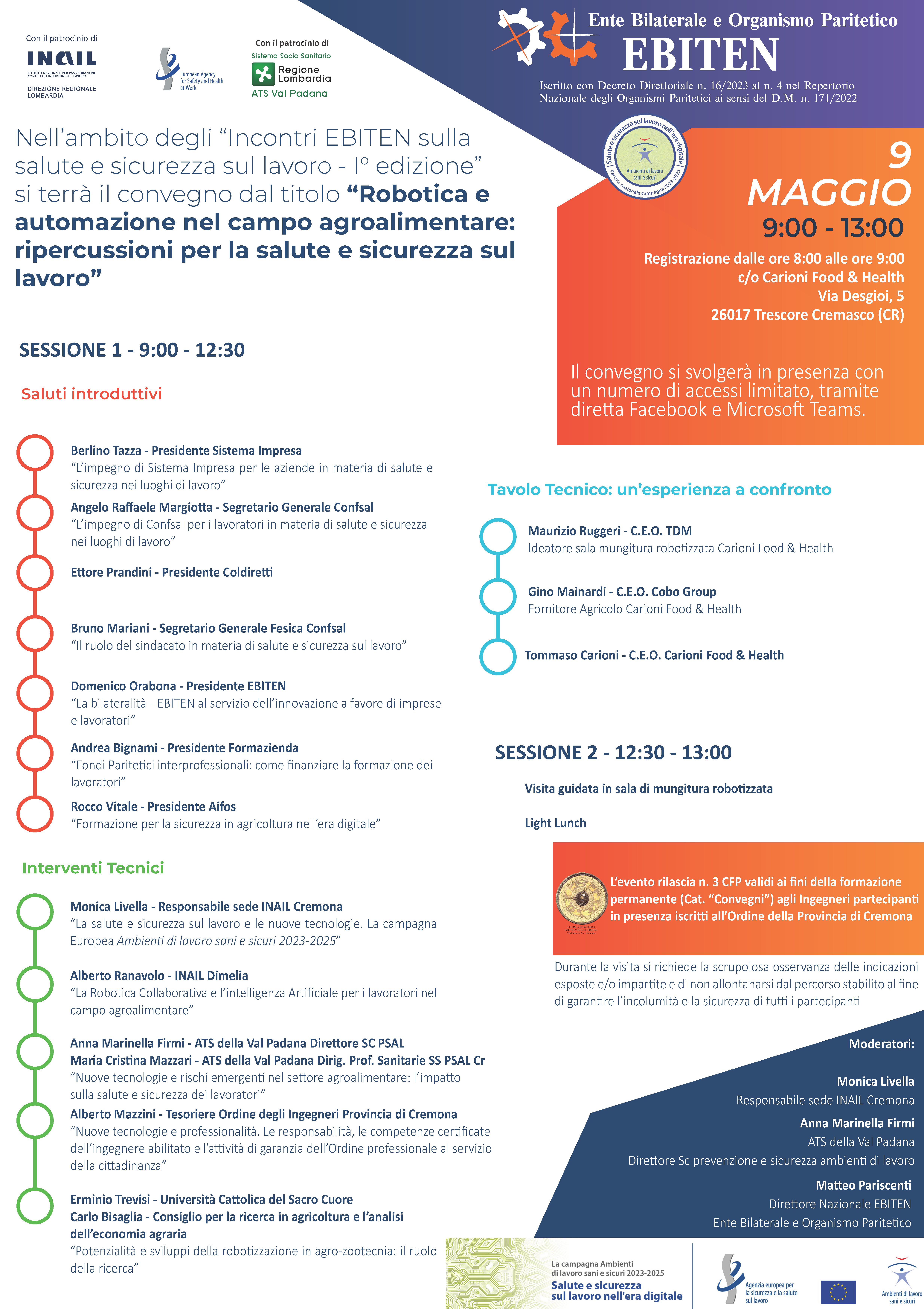 Il convegno, nell’ambito degli “Incontri Ebiten sulla salute e sicurezza sul lavoro – I^ edizione”, è sintetizzato nel titolo “Robotica e automazione nel campo agroalimentare: ripercussioni per la salute e sicurezza sul lavoro”.