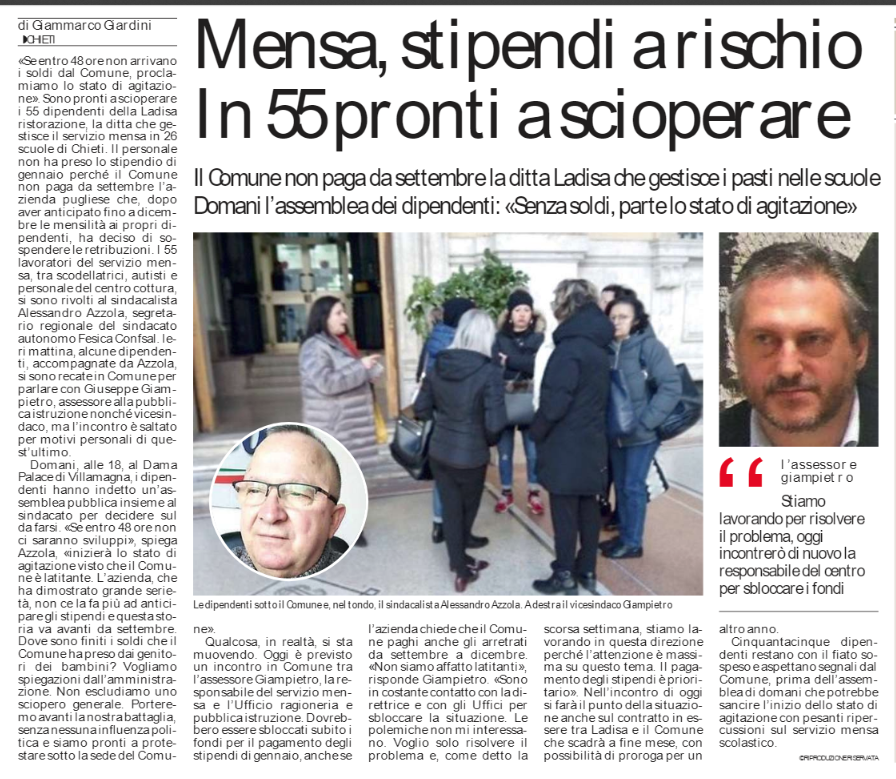 Mensa, stipendi a rischio. In 55 pronti a scioperare – 14 febbraio 2019 (Il Centro)