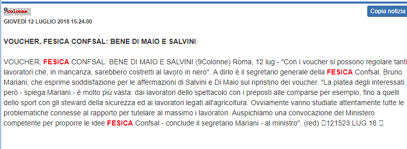 Manovra, Fesica Confsal: “Bene voucher per lavoro occasionale e contro quello irregolare” – 24 novembre 2022 (Da LIBERO)